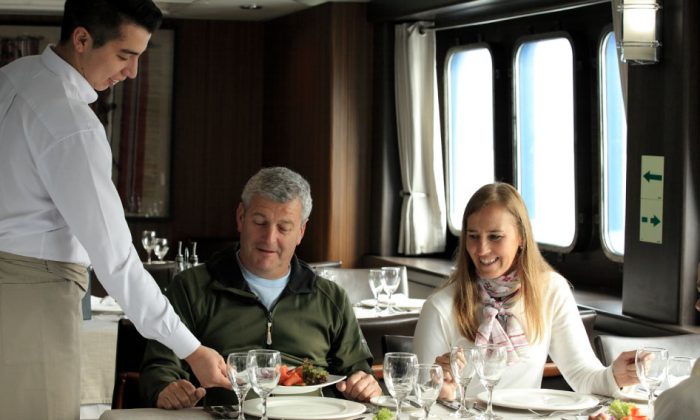 Crucero Australis includes the entire food system; local and international cuisine and open bar from 10:00 a.m. to 00:00 a.m. We are talking about dinner –a menu with two options–, special meals according to requirements, wines, liquors and beverages.
